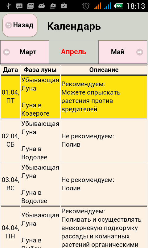 - calendrier mensuel de semis lunaire - pour chaque date, sa propre recommandation;