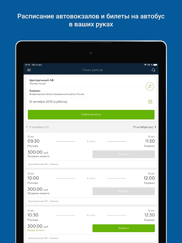 Horaire des autobus et des billets de la gare routière centrale à Moscou (station de bus Schelkovskogo), ainsi que certains vols de retour.
