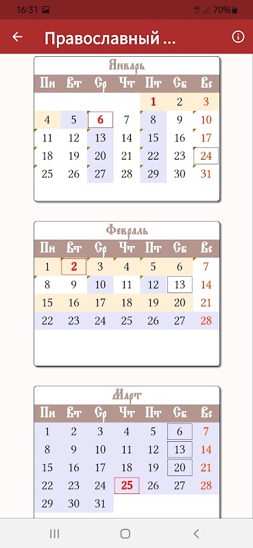 Inclut l'ancien calendrier orthodoxe. Cette application vous propose un calendrier orthodoxe complet pour 2026 avec des informations détaillées sur toutes les fêtes religieuses. Pour plus d'informations sur une fête orthodoxe en particulier, consultez le synaxaire correspondant. Merci d'utiliser notre programme !