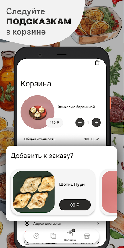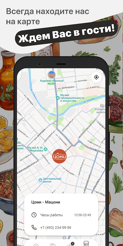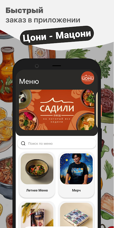 Comment passer une commande dans l'application "Tsoni - Matsoni": sélectionnez les articles que vous aimez dans le menu, ajoutez-les au panier et accédez à l'écran de paiement (en cliquant sur l'icône du panier).