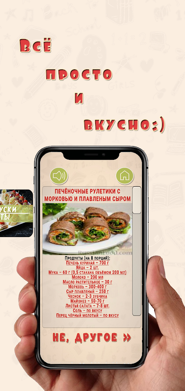 Application mobile « Que cuisiner... Aujourd'hui ?! » - ce n'est pas un livre de toutes les recettes ou autres, ce sont des recettes simples pour tous les jours à partir d'ingrédients toujours à portée de main. De plus, l'application vous aidera à décider ce que vous pouvez cuisiner.