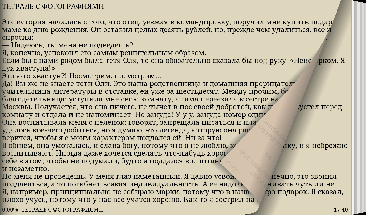 Чтобы создать у пользователей впечатление чтения реальной книги в приложении создан эффект перелистывания страниц.
