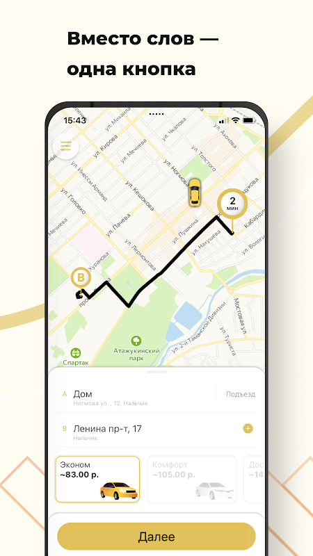 Закажите Юг Комфорт: такси и доставка в городах Нальчик, Нарткала, Баксан, Майский, Прохладный, Тырныауз, Кашхатау, Чегем через приложение. Это в 3 раза быстрее, чем по телефону! Между желанием доехать до нужного места и поиском автомобиля — пара секунд.