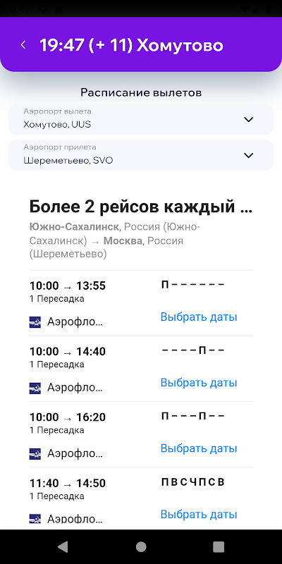 Южно-Сахалинск: табло рейсов 1.1.0