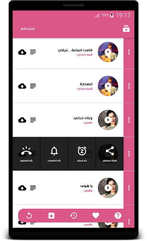 - امكانية مشاركة الاغنية عبر مختلف وسائل التواصل الاجتماغي ك الفيسبوك ميسانجر والواتساب او رسائل.