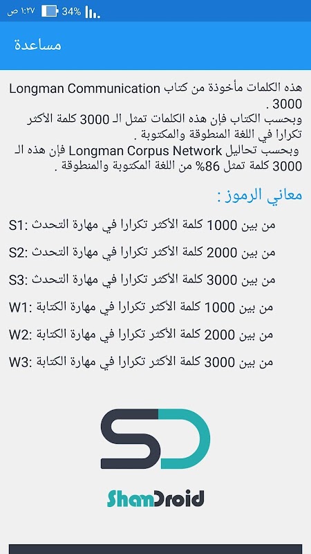 - التطبيق يحتوي على أهم الكلمات الانجليزية ومعناها بالعربية ، وليس أهم 1000 كلمة انجليزية فقط -