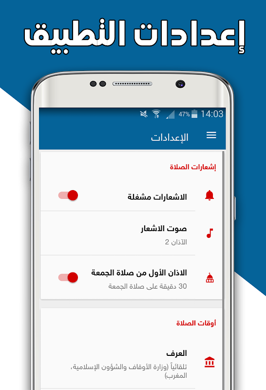 - تنبيهات لأوقات الصلوات، مع إمكانية اختيار صوت الأذان لكل صلاة على حدة