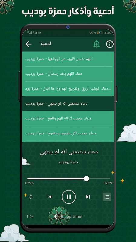 La possibilité d'écouter une supplication dans la voix de Hamza Boudib sans Internet et de travailler sur l'appareil en même temps.