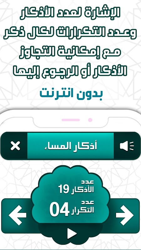 Le programme de dhikr vocal est un programme qui offre aux utilisateurs de nombreux avantages, car il fonctionne sans Internet et permet d'écouter tous les dhikr et supplications ou de les lire à travers des textes écrits dans une police claire et grande.