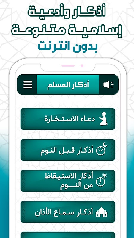 L'application (adkar sabah) comprend un ensemble de supplications quotidiennes du Noble Coran et de la Sunna du Prophète, parmi le contenu du programme (adkar assabah)