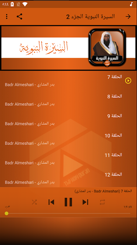 Si vous voulez que votre téléphone portable ou tablette soit rempli du souvenir de Dieu, et si vous aimez écouter Cheikh Badr Al-Mishari dans la récitation du Coran, l'application de la biographie complète du prophète Badr Al-Mashari sans Internet vous permet de télécharger la sourate de la biographie du prophète avec la voix de Badr Al-Mishari sans Internet.