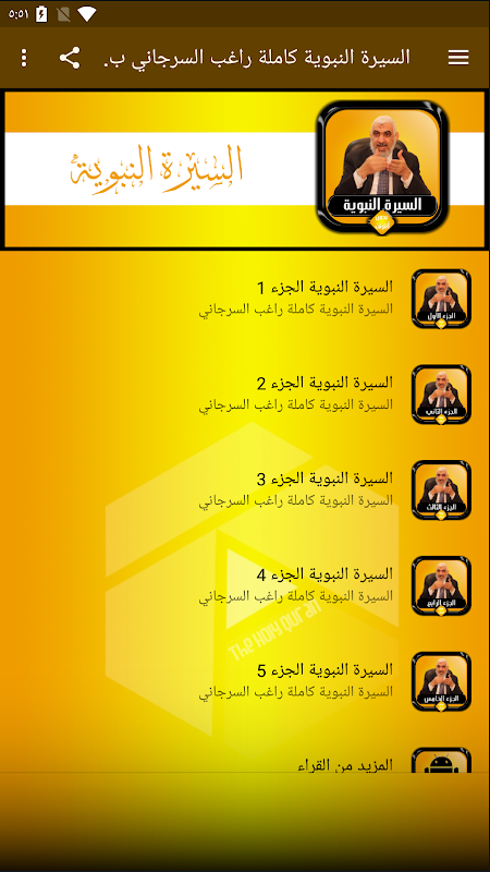 L'application de la biographie du Prophète avec la voix de Ragheb Al-Sarjani vous permet d'entendre le mur de la biographie du Prophète sans Internet via votre téléphone portable ou votre tablette avec facilité et commodité grâce à un programme qui contient toutes les sourates de la biographie du Prophète sans Internet. Disponible sur la boutique pour les téléphones Android. L'application de la biographie du Prophète, Ragheb Al-Sarjani, peut être téléchargée complètement sans Internet avec facilité, afin que vous puissiez profiter de la récitation de la biographie du Prophète avec la voix de Cheikh Ragheb Al-Sarjani où vous voulez et avec une haute qualité sans Internet.