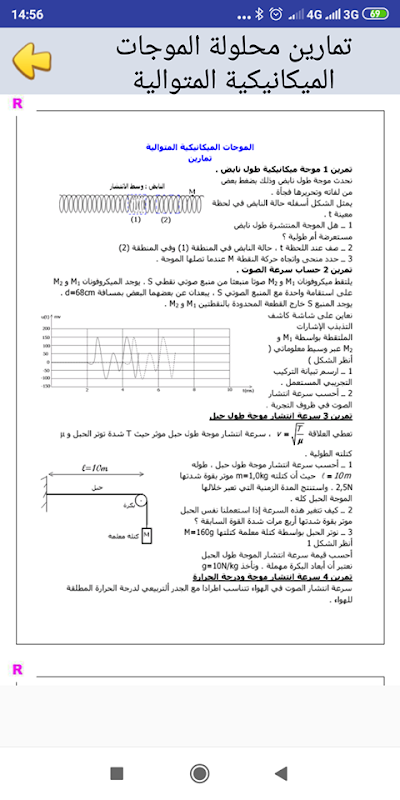 تمارين محلولة الموجات الميكانيكية المتوالية
