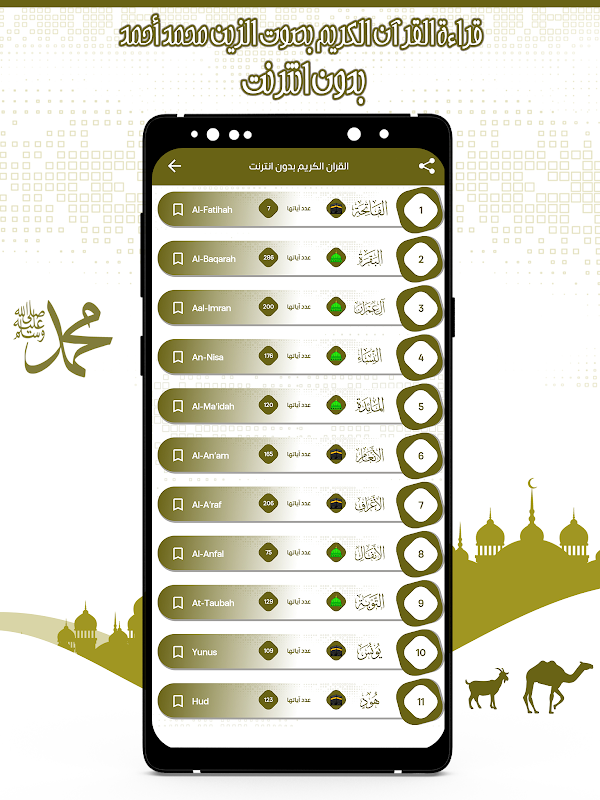 Définition d'une application Coran complète avec la voix d'Al-Zain Muhammad Ahmed sans Net