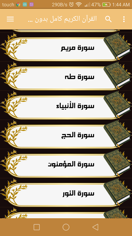 The application of the entire Quran without Net includes all the blessed walls that you can read with many features in the application such as search, share and add to favorites.