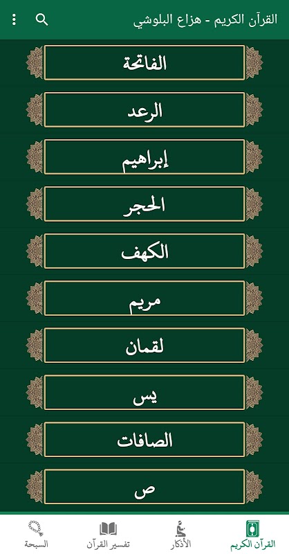 Maintenant, vous pouvez utiliser l'application avec facilité et également lire et écouter les sourates du Noble Coran avec la voix de Cheikh Hazza Al Balushi et vivre un merveilleux cas de foi dans lequel vous plongez dans les significations du Noble Coran , profitant de la voix de Cheikh Hazza Al Balushi, qui vous transporte dans un autre monde avec sa voix distinctive.