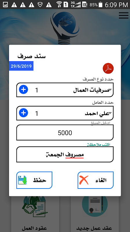 * امكانية طباعة التقارير والسندات والفواتيروعقود العمل