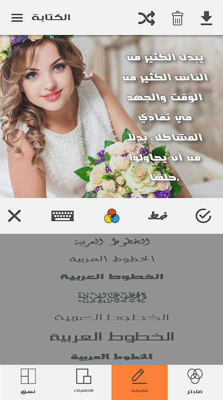 كما يمكنك الكتابة علي الصور بالغتين العربية و الانكليزية .