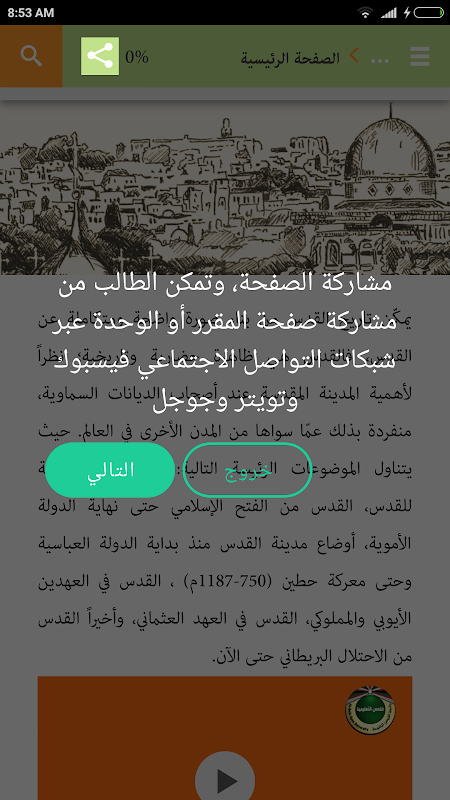 Où il traite de cette application Les principaux thèmes suivants: la géographie historique de Jérusalem, Jérusalem, de la conquête islamique jusqu'à la fin de la dynastie des Omeyyades, la situation de la ville de Jérusalem depuis le début de l'état abbasside et même la bataille de Hattin (750-1187m), Jérusalem dans les Pactes ayyoubide et mamelouk, Jérusalem dans l'Empire ottoman, et enfin Jérusalem de l'occupation britannique jusqu'à présent.