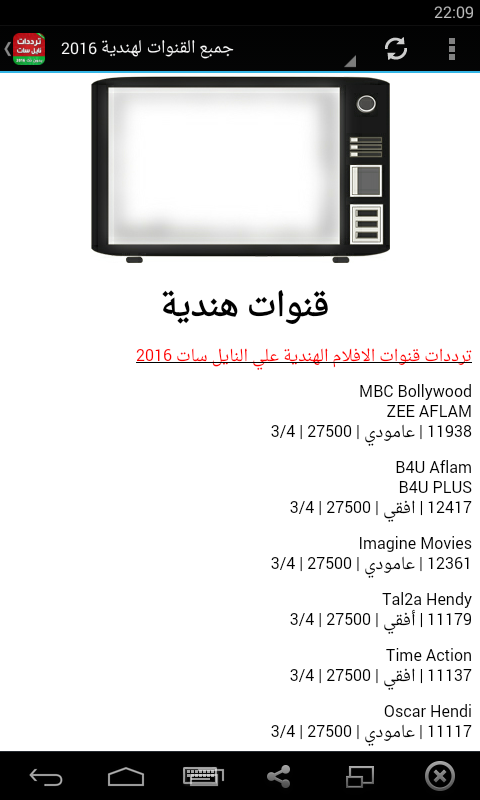 هذا التطبيق يمكنكم من مشاهدة سواء تردد القنوات المشفرة او جميع قنوات التلفزيون المصري في نايل سات, وهو يحتوي على العديد من الترددات الجديدة كليا لسنة 2018 والتي تقدم لكم العديد من المفاجئات المتميزة لكل العائلة العربية, وفي الاسفل نذكر ما بعض ما يحتوي عليه التطبيق الخاص بنا.
