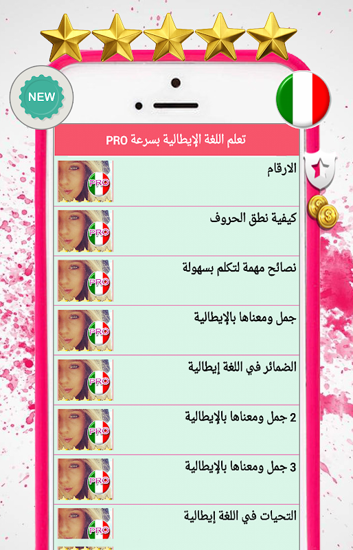 L'application arabe vous aide à apprendre l'italien facilement et de manière éprouvée! Apprendre sans Internet