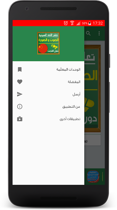 تطبيق تعلم اللغة الصينية صوت و صورة ، يمكنكم من تعلم اللغة الصينية بسرعة و بسهولة وبدون معلم، وأيضا سهل الإستخدام و بجودة صوت عالية ، و يعمل من دون الحاجة إلى انترنت.