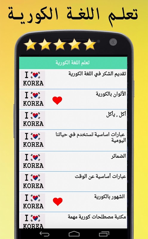 تعلم اللغة الكورية هو تطبيق لاختبار و لتعلم اللغة الكورية في أقصر وقت بالتعرف على أهم الكلمات الكورية المتداولة في الحياة اليومية