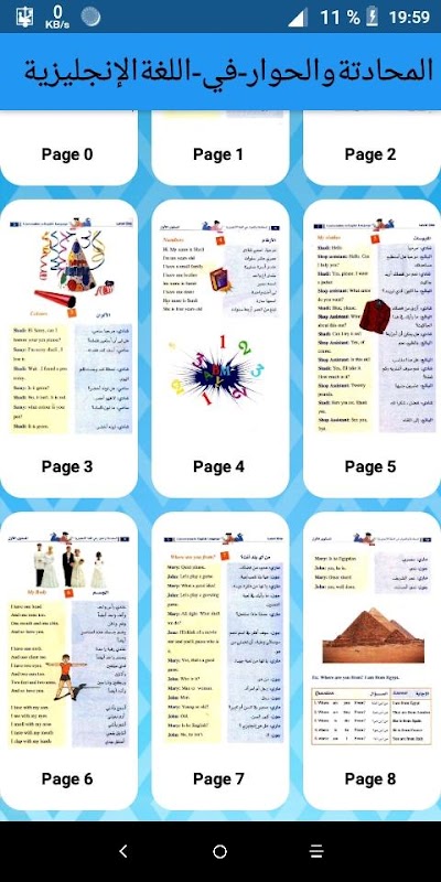 Bienvenue aux amis qui veulent apprendre l'anglais Ce livre est merveilleux et le photographe vous aidera à apprendre à parler des phrases et des phrases en anglais et en arabe, en plus des images qui y sont attachées, facilitant parfois la compréhension des phrases et des mots non traduits.