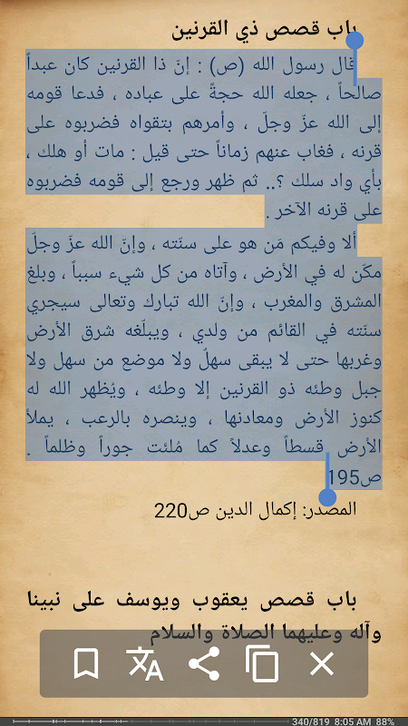 * تقتباس العبارات وتلوينها بثلاث الوان لحفظها وإمكانية أضافة ملاحظات على العبارة المقتبسة
