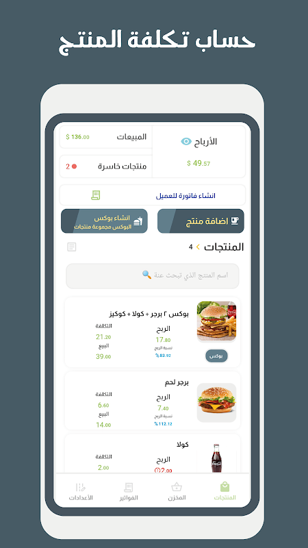 • Créer des factures pour connaître le pourcentage de profit de la facture et partager la facture avec les clients et au nom du magasin et le numéro de contact