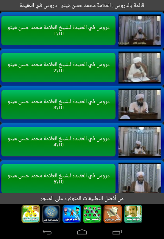 L'application est actuellement contient plus de huit chaînes ou conférence religieuse islamique, plusieurs scientifiques et des défenseurs.