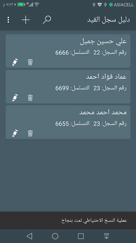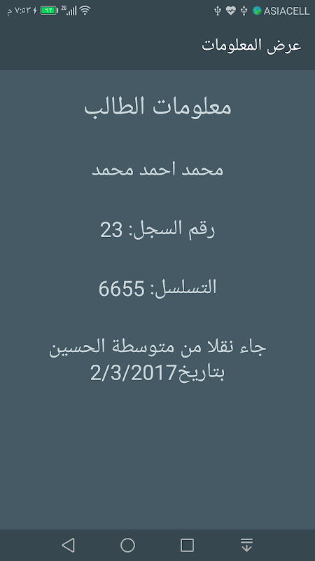 Enregistrement des noms des étudiants avec dossier d'inscription Tzlslathm en plus du numéro d'enregistrement enregistrement.