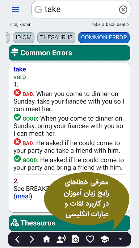 Lorsque vous décidez d’apprendre une nouvelle langue, acheter un dictionnaire fiable est l’un de vos principaux besoins. Dans le dictionnaire des analystes TDictionary, tous les mots des dictionnaires persans généraux et spécialisés ont été rassemblés et des synonymes et la prononciation des mots principaux y ont été ajoutés.