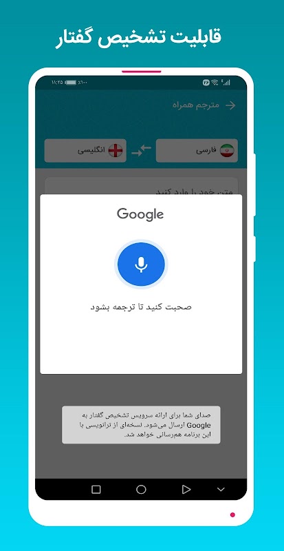 تاParlez pour que ce programme, comme un traducteur mobile, traduise automatiquement votre discours dans différentes langues, audio et texte .. (Convient pour parler des langues étrangères)