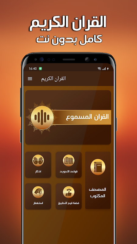 Le Saint Coran dans son intégralité sans Internet est une application qui permet aux utilisateurs d'accéder à une récitation complète du Saint Coran avec une interface facile à utiliser et sans avoir besoin d'une connexion Internet. Dieu Tout-Puissant a dit : (En effet, ce Coran guide vers ce qui est le plus droit et annonce aux croyants qui font de bonnes actions qu'ils auront une grande récompense) (Al-Bukhari et Muslim). Sara : 9).