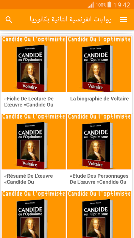 التطبيق يتوف على رواية Le père Goriot , Il Était Une Fois Un Vieux , Candide ou l’optimisme مع التلخيص و التحليل