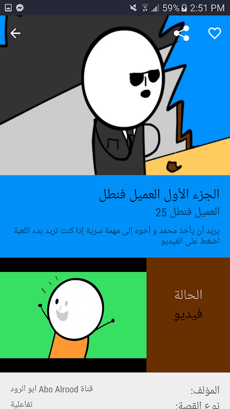القصص المتوفرة في بداية اطلاق النسخة الأولى من التطبيق هي: