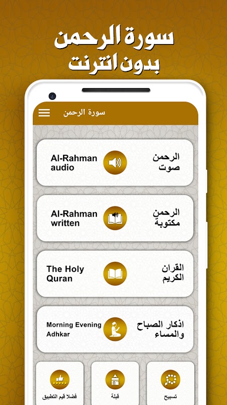 Une application qui vous propose Surat Al-Rahman sans Internet, en plus de Surat Al-Rahman écrite en voix sans le net