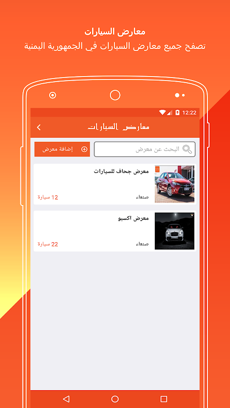 تطبيق سيارتي يأتيكم باعلانات السيارات المعروضة للبيع في معارض وحراجات اليمن بالإضافة إلى مواصفات السيارات واسعارها، عناوين المعارض ومعلومات الاتصال كاملة. تصفح السيارات المعروضة للبيع في جميع معارض صنعاء واب وذمار وعدن والحديدة والمهرة وحضرموت والجوف ومارب وجميع محافظات الجمهورية اليمنية .