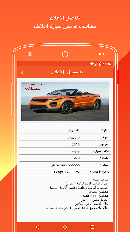 1) يتيح تطبيق سيارتي للمستخدم تصفح اعلانات السيارات بكل سهولة.