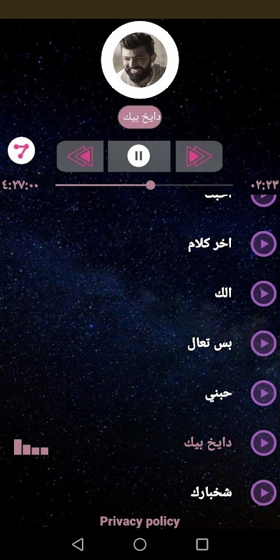 نقدم لكم تطبيق اغاني بدون نت وجوده عاليه في الصوت وتحديث مستمر لكل ماهو جديد للفنان العراقى والملحن سيف نبيل .