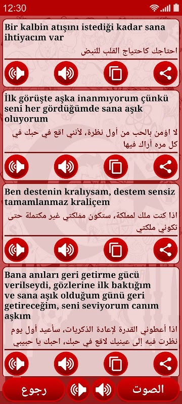 يدعم التطبيق ميزة "تحويل النص إلى كلام" وبالتالي يمكنك تعلم التركية بالصوت, وأيضاً يتضمن خاصية الإشعارات "Notifications" والشاشات المصغرة "Widgets" والتي تعرض في كل يوم جملة جديدة.