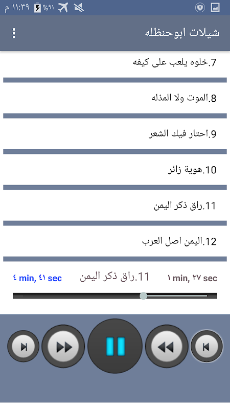 يحتوي التطبيق شيلات ابو حنظله على الشيلات التالية: