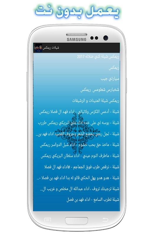 تطبيق شيلات ريمكس هجولة بدون نت يزخر بمجموعة كبيرة مكن الشيلات ريمكس وشيلات الحماسية تطبيق شيلات يشتغل في الخلفية اضافة الى عمل ريمكس على على شيلات تحت طلب يتم توفير في التحديث الاسبوعي اعض من الشيلات التي تجدونها داخل التطبيق