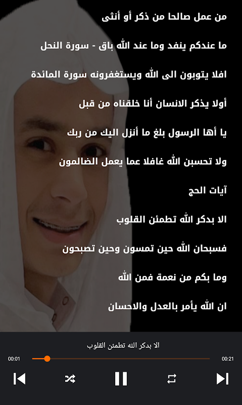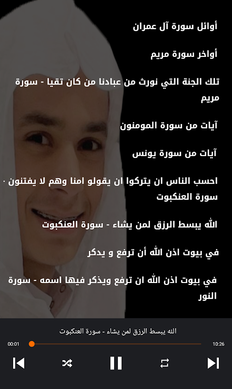 مرحبا بكم في تطبيق القران الكريم عبد الرحمن مسعد بدون نت. يمكنكم تطبيق تطبيق القران الكريم عبد الرحمن مسعد من الإستماع إلى القران الكريم بصوت عبد الرحمن مسعد بدون نت بجودة ممتازة، بالاضافة الى أن تطبيق تلاوة القرآن بصوت عبد الرحمن مسعد مجاني ويمكن تحميل تطبيق القرآن الكريم بصوت عبد الرحمن مسعد بكل سهولة لكي تستمتع بتلاوة القرآن الكريم بصوت الشيخ عبد الرحمن مسعد أينما تشاء وفي اي وقت تريد وايضا قمنا بتصميم برنامج القران الكريم عبد الرحمن مسعد بدون نت ليكون سهل الاستخدام بواجهة بسيطة جذابة وسلسلة وسهلة الاستعمال.