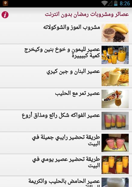 عصائر ومشروبات رمضان بدون انترنت يعرض وصفات عصير ومشروبات منزلية ابداعية متجددة