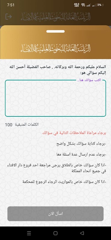 Un service qui fournit des avis juridiques par l’intermédiaire de la présidence générale pour l’émission de fatwas