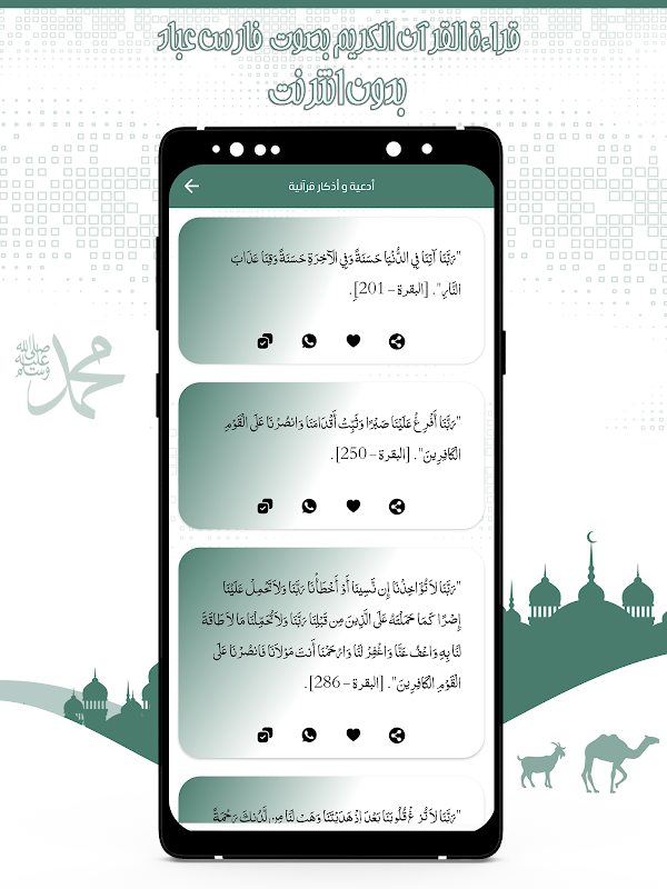 Et si vous êtes un fan de l'écoute du Saint Coran avec la voix de Cheikh Fares Abbad ... et d'autres constellations d'anciens, ou si vous voulez apprendre les dispositions de l'intonation ou vous familiariser avec la légitimité juridique la plus forte, n'hésitez pas à jeter un œil au reste de nos applications sur la boutique qui sont disponibles pour les utilisateurs gratuitement et facilement. .