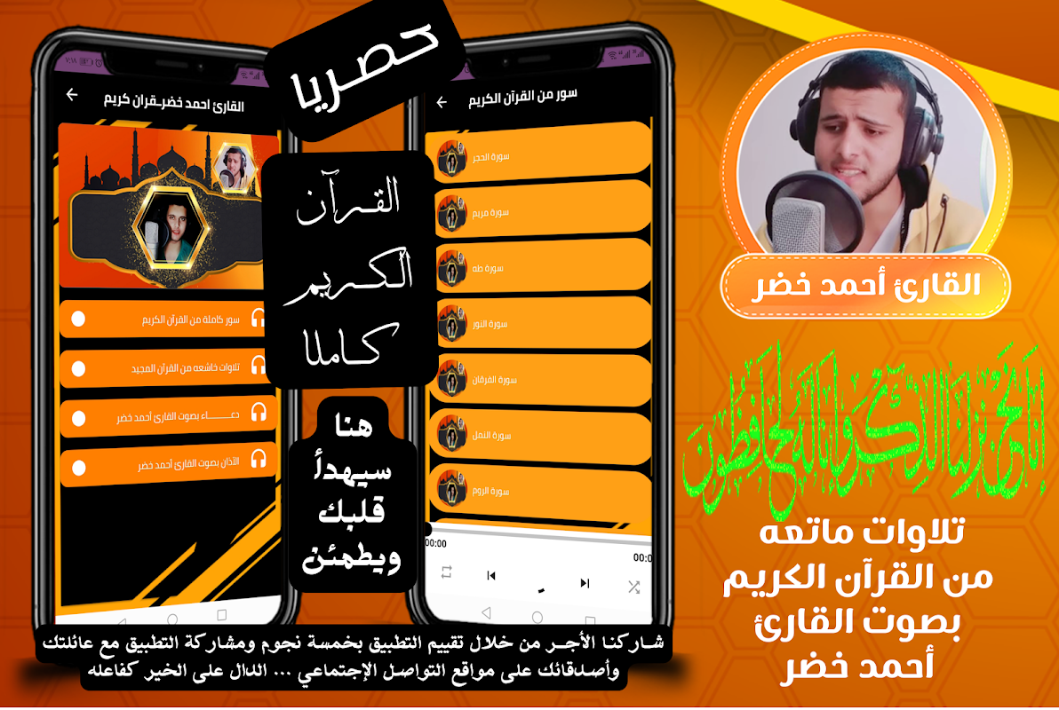 ✅ Si vous aimez le contenu de l'application complète d'Ahmed Khedr, nous vous demandons d'évaluer l'application complète du Coran d'Ahmed Khedr, le Saint Coran, dans la voix d'Ahmed Khidr, avec cinq étoiles, et de profiter de la voix de Cheikh Ahmed Khidr .