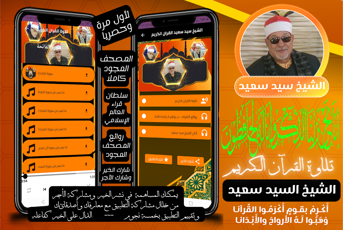 Nous espérons que cela vous aidera et que vous bénéficierez de l'application de l'intégralité du Saint Coran avec la voix de Cheikh Sayed Saeed.
